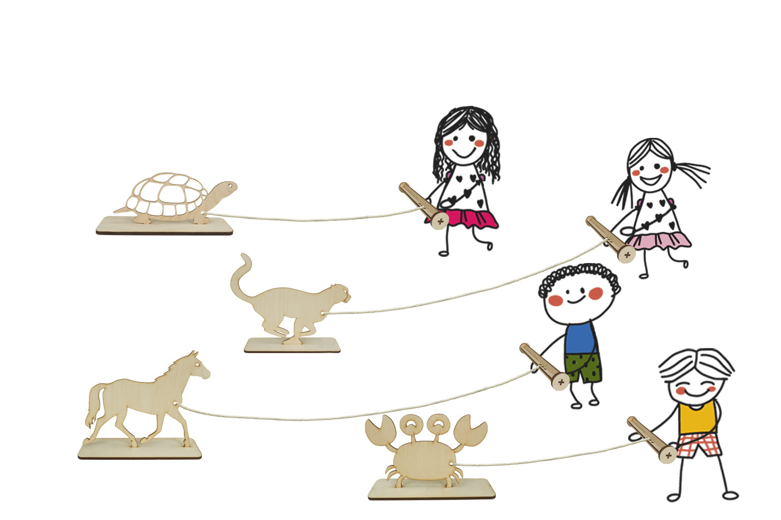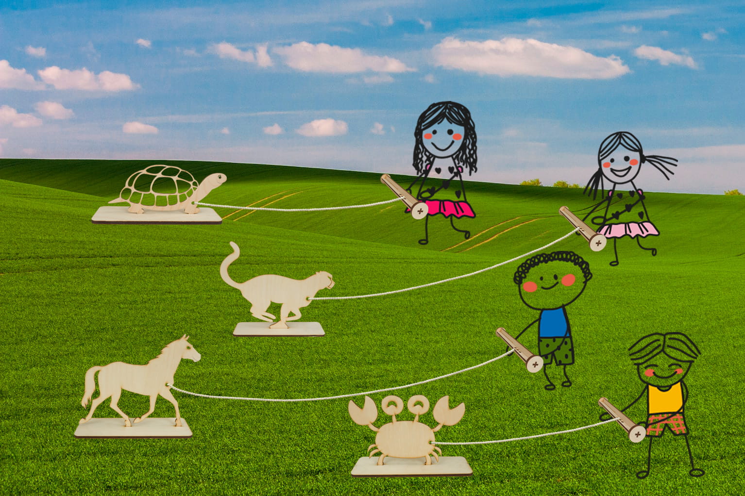 - Rozwija zdolności manualne - podczas gry gracze muszą skupić się na zwijaniu sznurka jak najszybciej! Wymaga to wyjątkowej precyzji, zręczności, koncentracji, oraz zaangażowania. Dlatego gra w Wyścig Zwierząt jest świetnym sposobem na rozwijanie zdolności manualnych, zwłaszcza u dzieci.