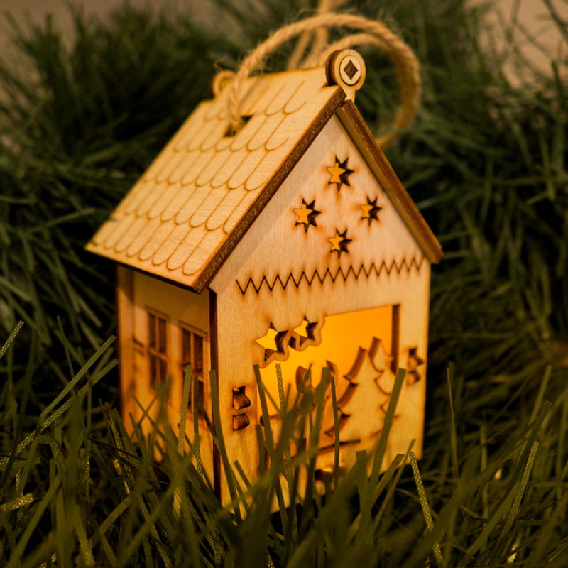Piękna ozdoba na choinkę, stroik lub Świąteczny stół. Nie ma nic piękniejszego niż ciepłe światło wydobywające się z przytulnego domku.