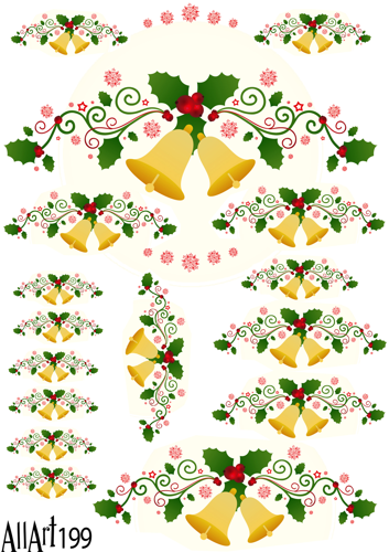 Papier decoupage 210x297mm A4 - AllArt 199 - Dzwoneczki świąteczne 5691