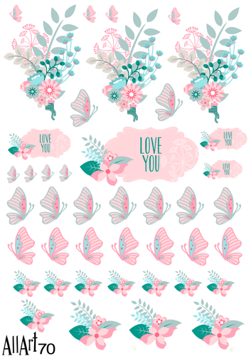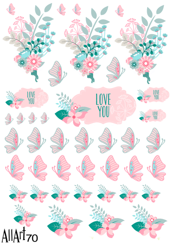 Papier decoupage 210x297mm A4 - AllArt 70 - kwiaty i motyle 5470