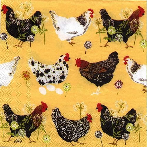 Serwetka do decoupage-kurki na żółtym tle 6517